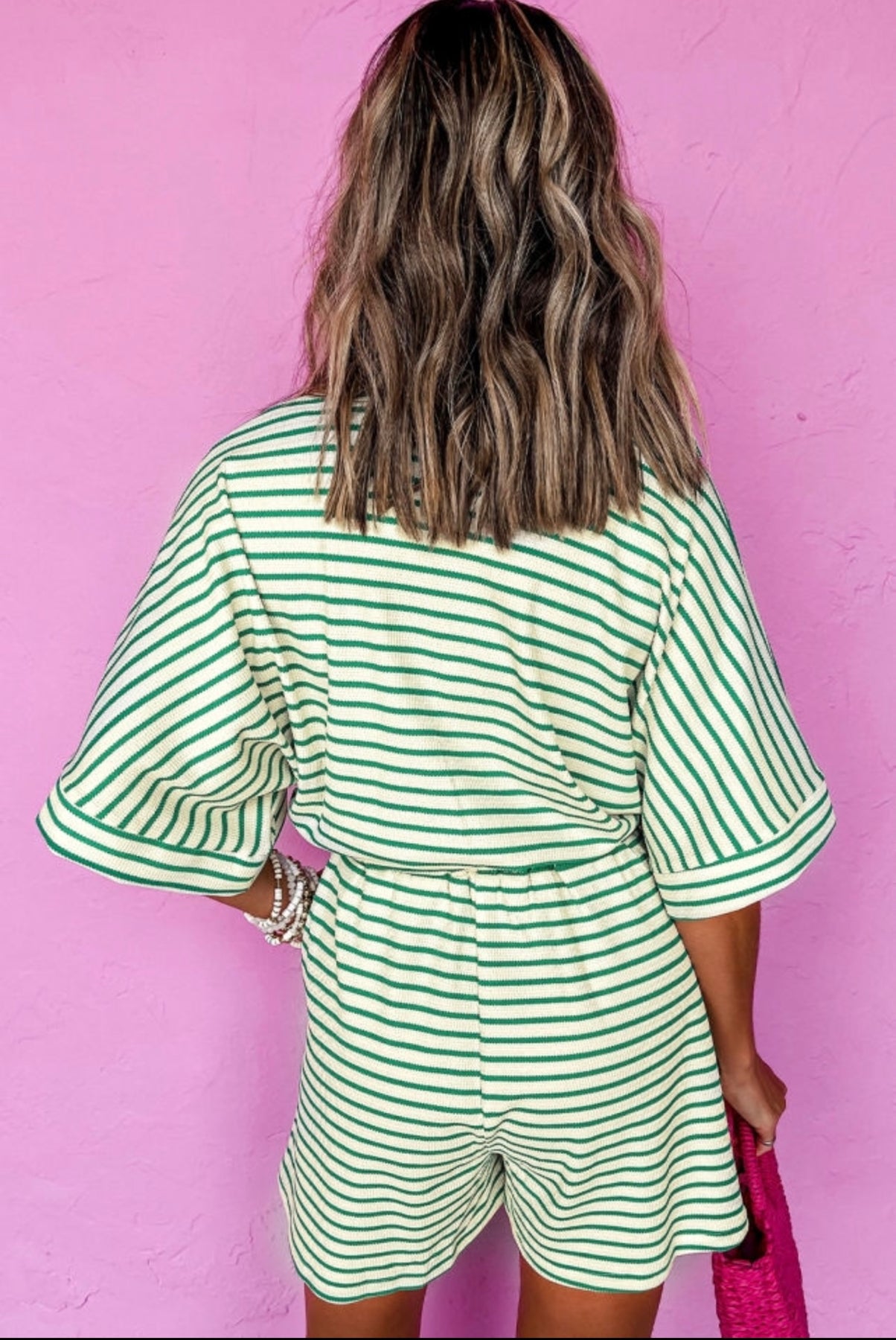 Green stripe short sleeve romper