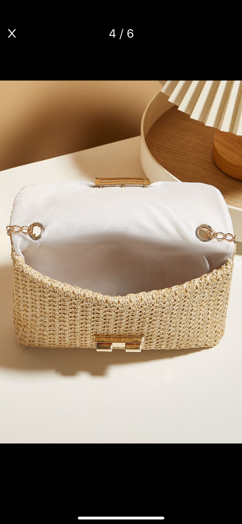 Lines inside, gold chain detaches to turn into a clutch. Fits phone and wallet perfectly.