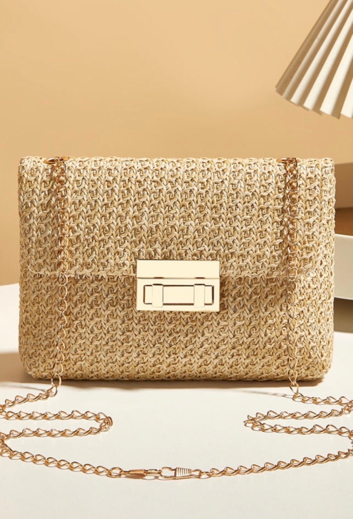 Camel boho woven shoulder purse